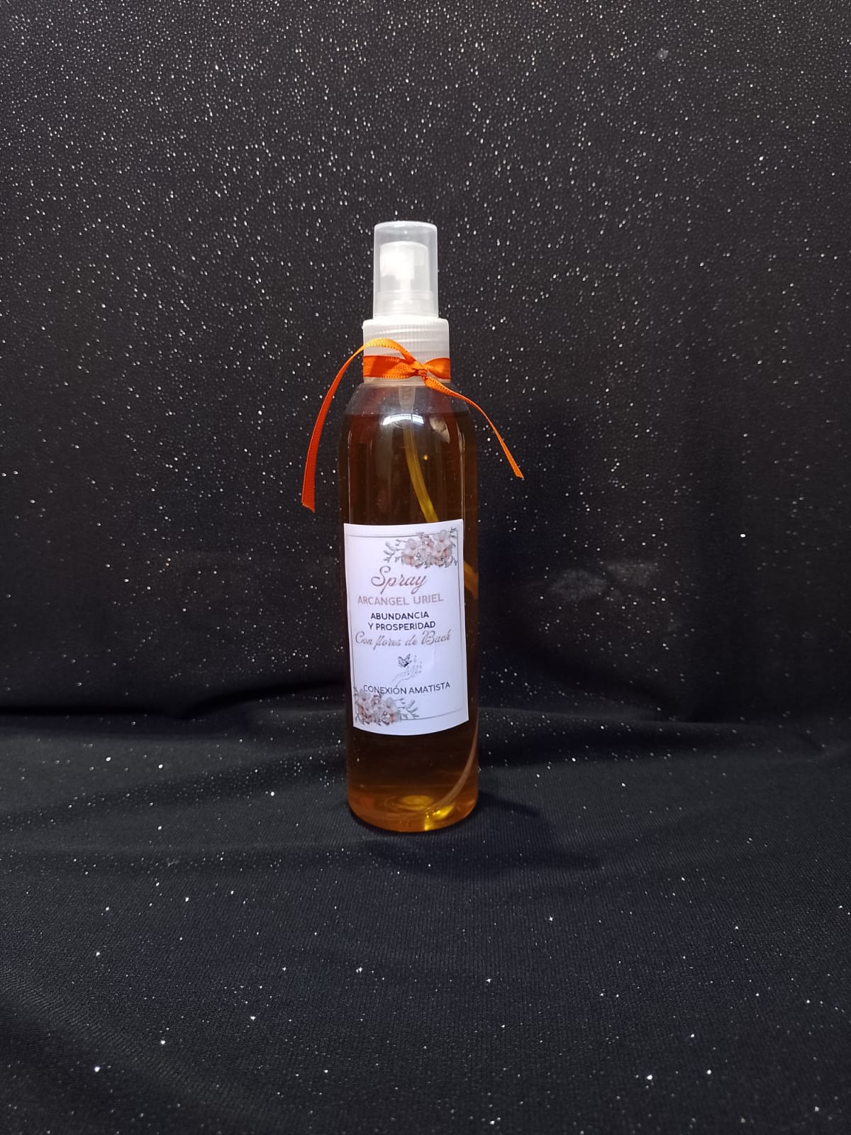 Spray Áurico y ambiental, para propiciar la abundancia y la prosperidad, realizados de forma artesanal, maceradas entre 45 y 60 días, no contienen colorantes, son totalmente naturales lo que hace que las fragancias sean suaves y no invasivas. Contiene clavo de olor, menta y limón. Se potencian estas formulas con Flores de Bach: Alerce, Cerato, Pino, Sauce, Centaura y se consagran al Arcángel Uriel, lo que lo convierte en un spray ideal para conectar con la energía de la prosperidad y abundancia, se puede usar en negocios, oficinas, en el lugar de trabajo, o en el hogar o sobre el campo áurico.