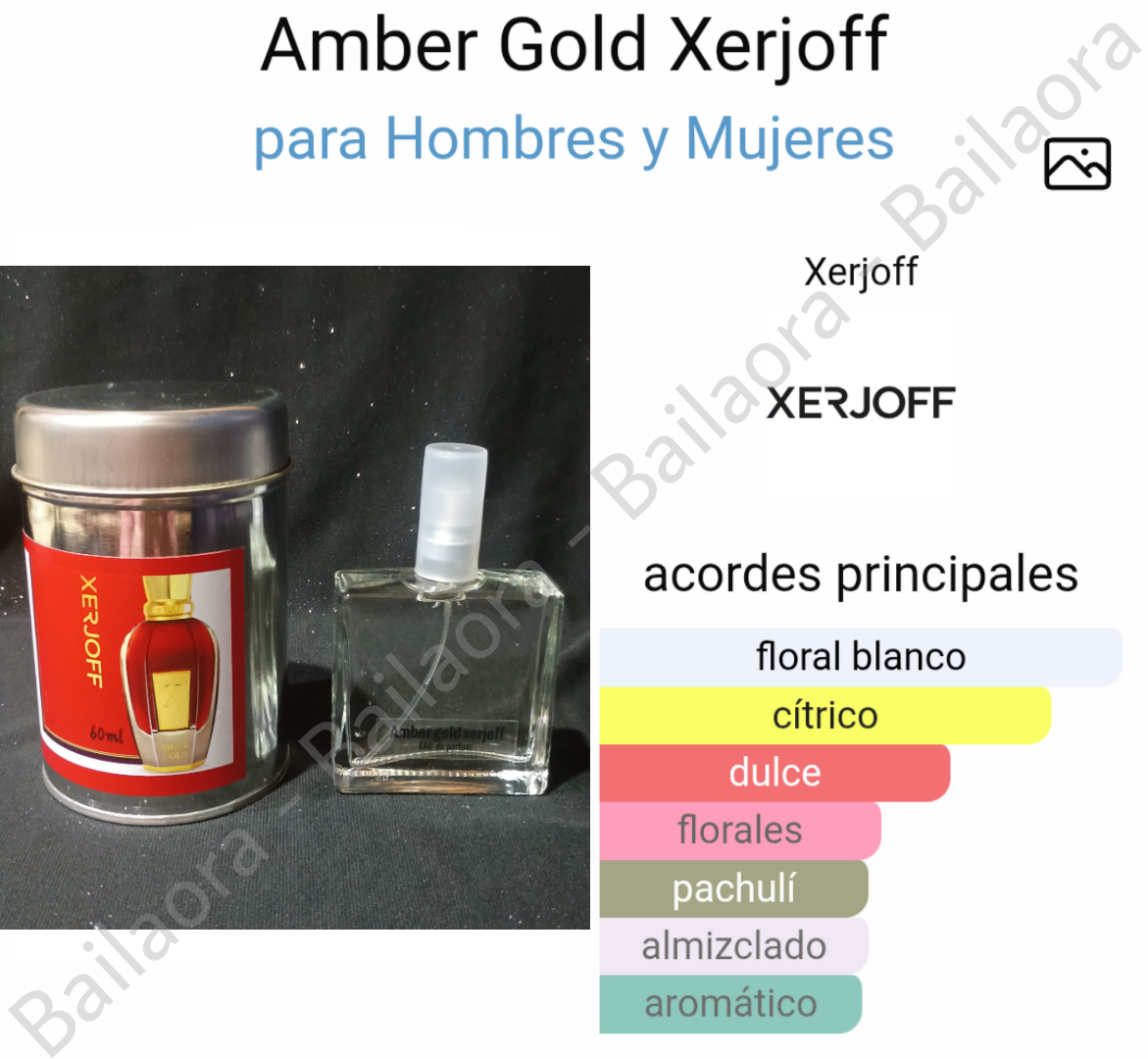 Las Notas de Salida son naranja tangerina y cilantro; las Notas de Corazón son flor de azahar del naranjo, flor del almendro y flor del tabaco; las Notas de Fondo son pachulí y almizcle.