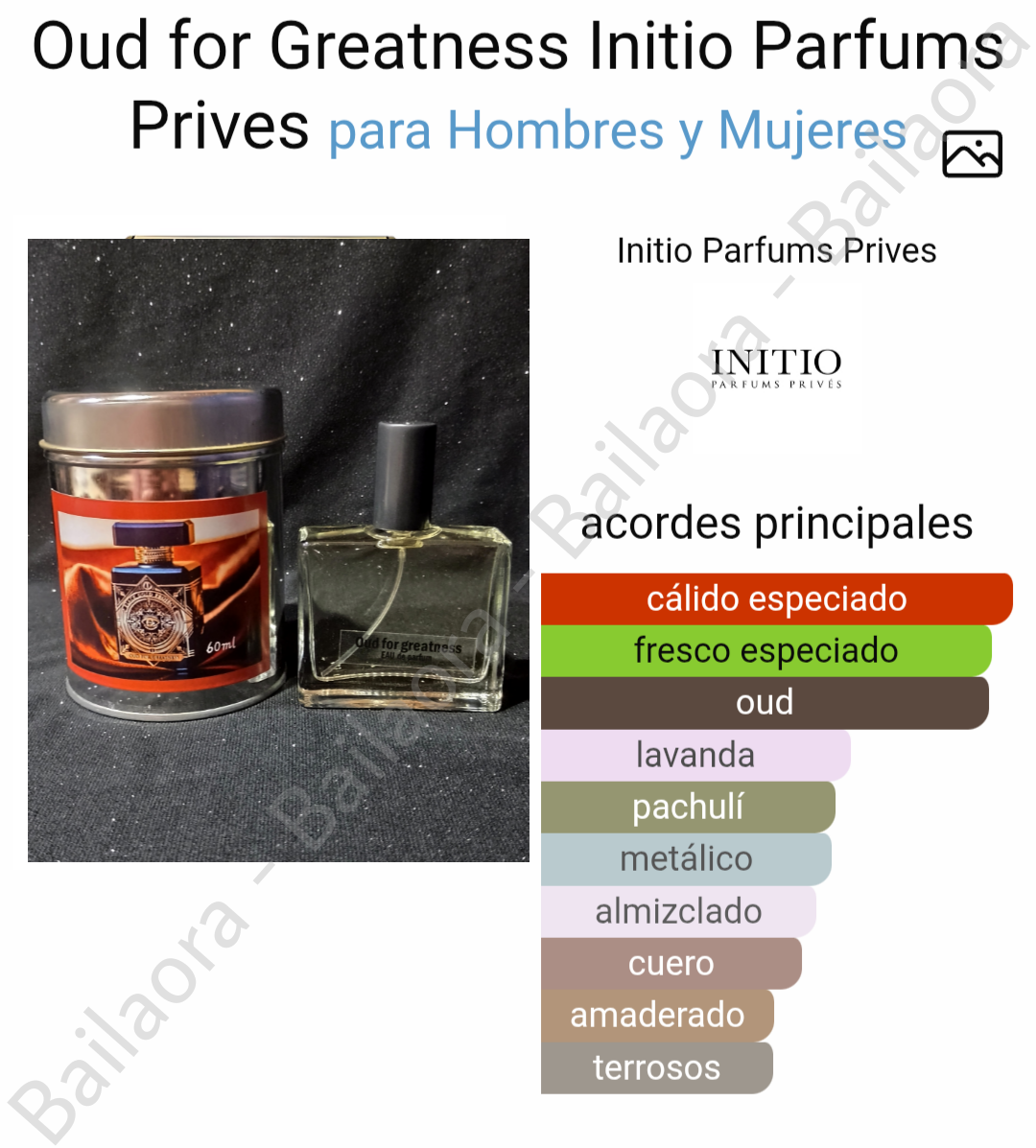 Notas principales: Madera natural de oud, aceite de madera de agar, lavanda, azafrán, pachulí, almizcle.